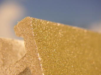 Kalın parlak metalik taneciklerinden dolayı ışıldayan bir yapısı