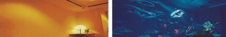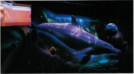 Sadece mor ışık altında görülebilen bu boyalar ile pek çok mimari proje farklılaşmaktadır. Normal ışık altında boş duvar. Aynı duvar Mor ışık altında ... Kullanım Şekilleri1- Resim olmayan düzgün boyalı bir duvarda bu boylarla resim yapılabilir. 2- Normal duvarda olan kara kalem çalışması bir resim bu boyalar ile karanlıkta renklendirilebilir. 3- Bir manzara yada yapının normal boyalar ile sabah görünen hali resmedilir.Bu resmin üzerinede akşam nasıl görünüdüğü resmedilir. 4- Normal boyalar ile yapılmış bir orman resminde vs, mor ışıkta ortaya çıkan aslan, ceylan, papağan vs diğer süprizler yapılabilir.